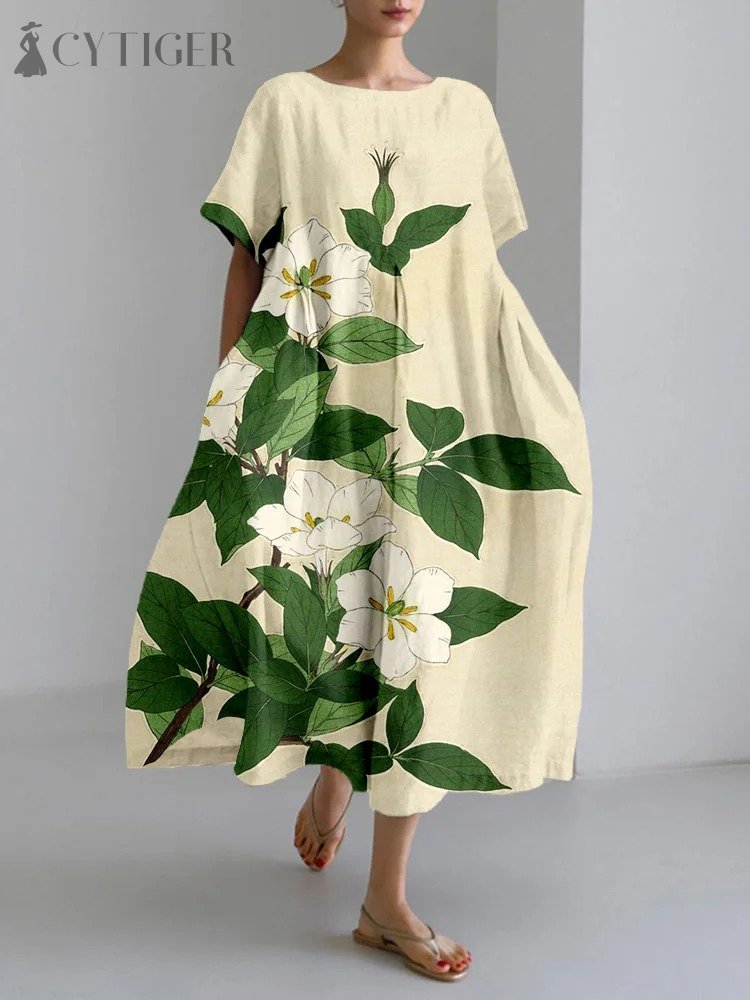 Cape Jasmin Japanese Art Linen Blend Maxi Dress