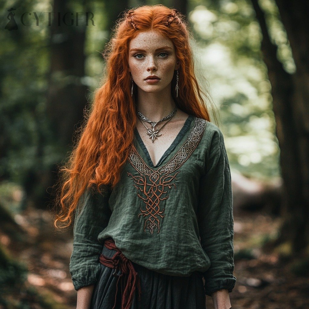 Tribal Viking Life Of Tree Inspired Cotton And Linen V-neck Loose Shirt