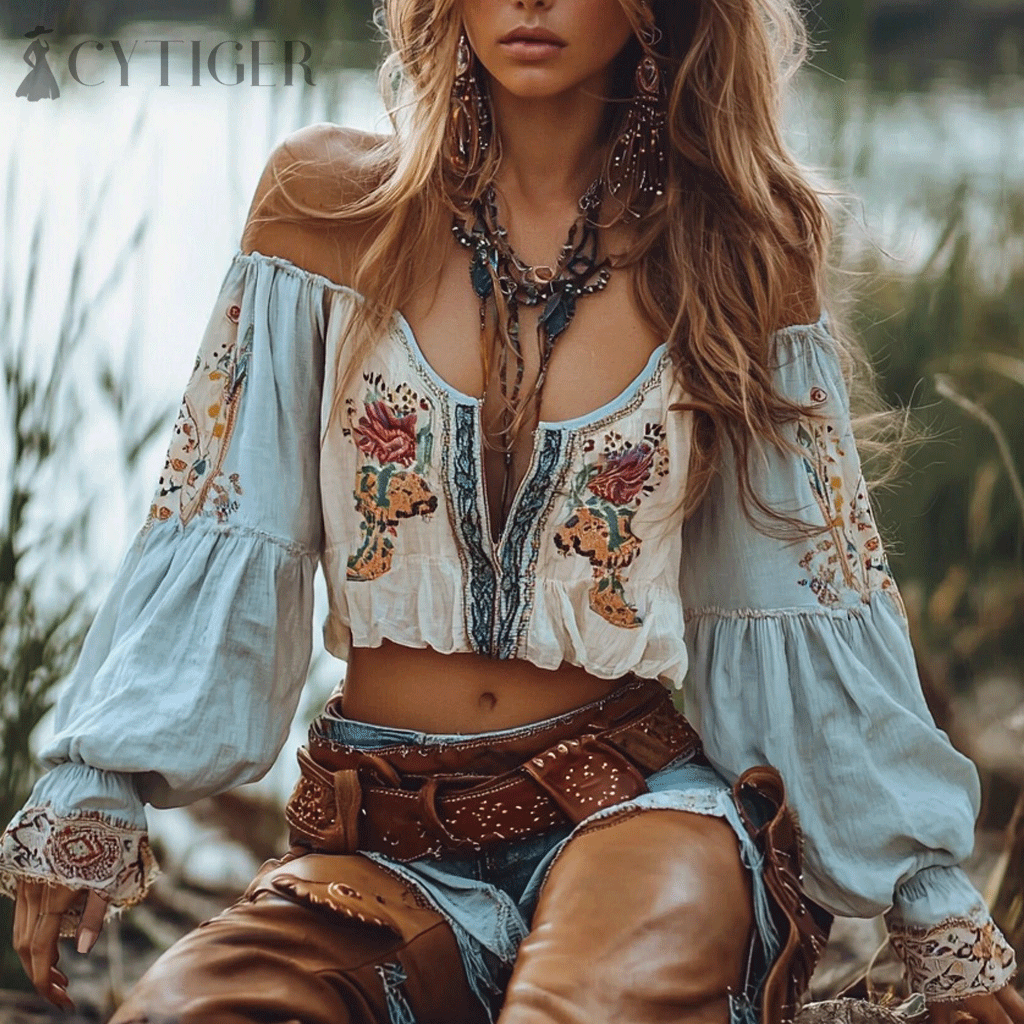 Women's Bohemian Gypsy Sweet Stitching Shirt