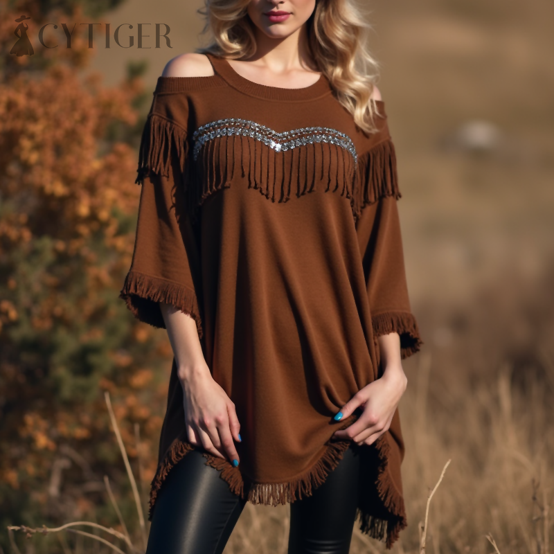 Women's Fringed White Beaded Accents Off-the-shoulder Elegant Tunic Pullovers Blouse Dressy Tops