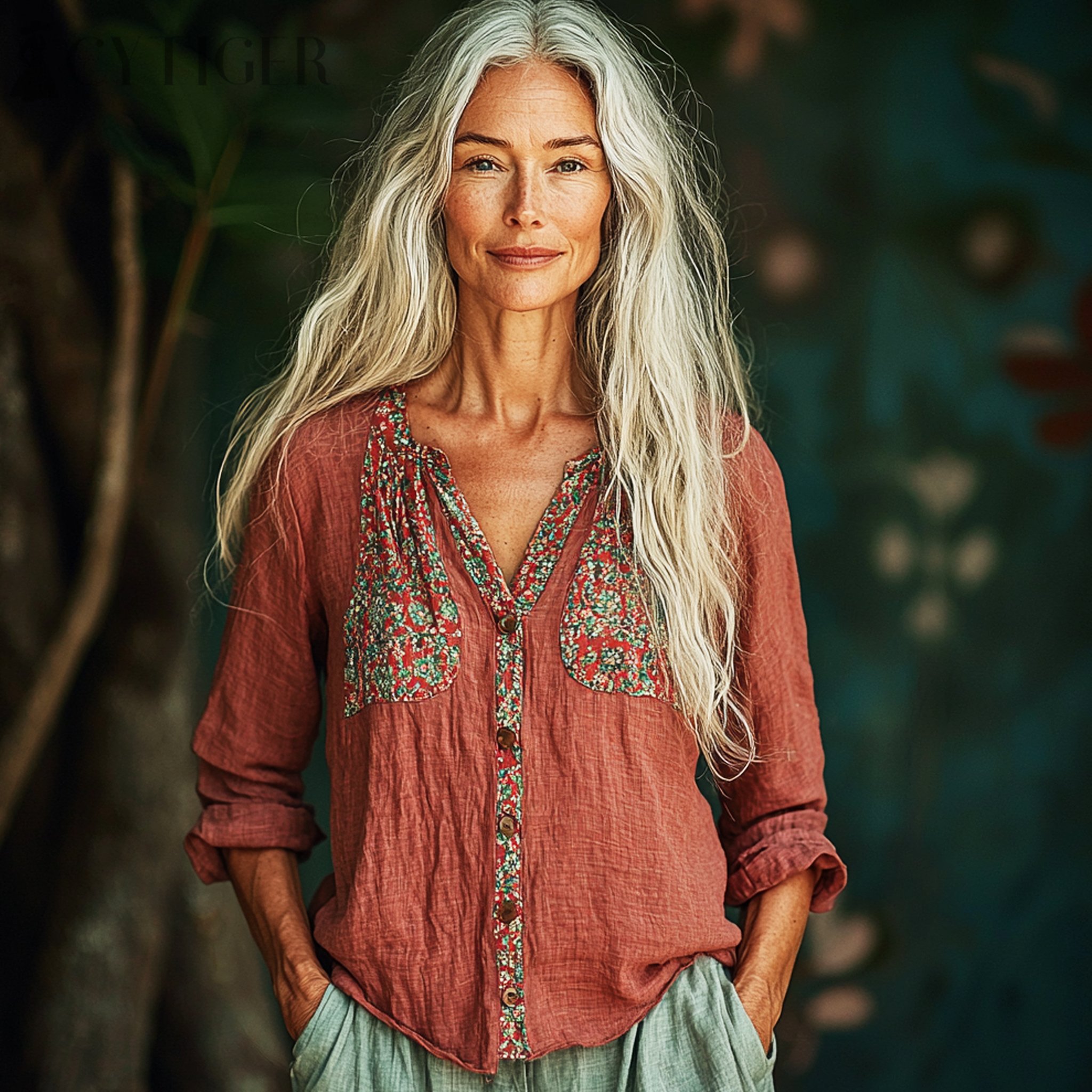Women's Linen Mini Floral Print Panel Shirt