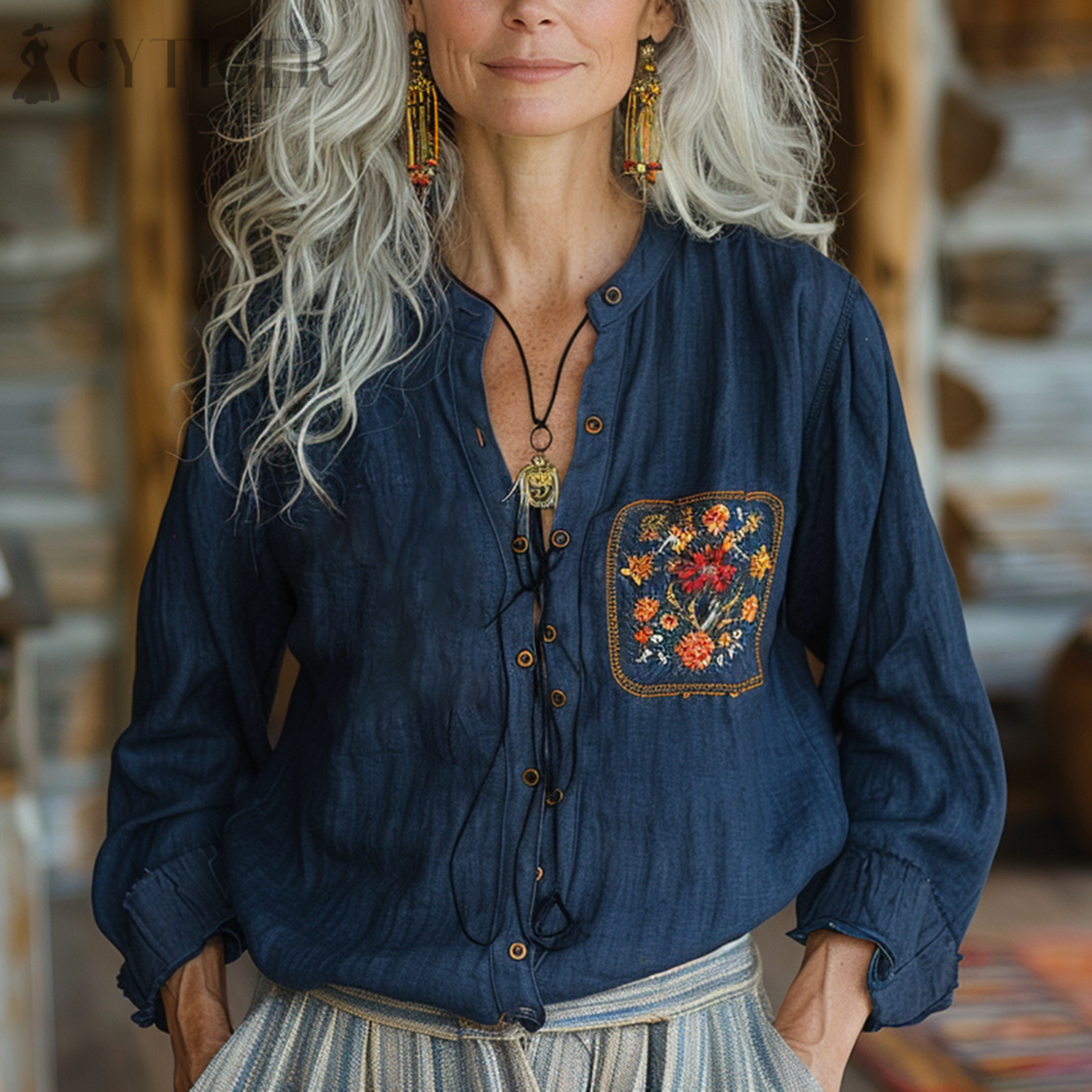 Women's Retro Ethnic Floral Shirt