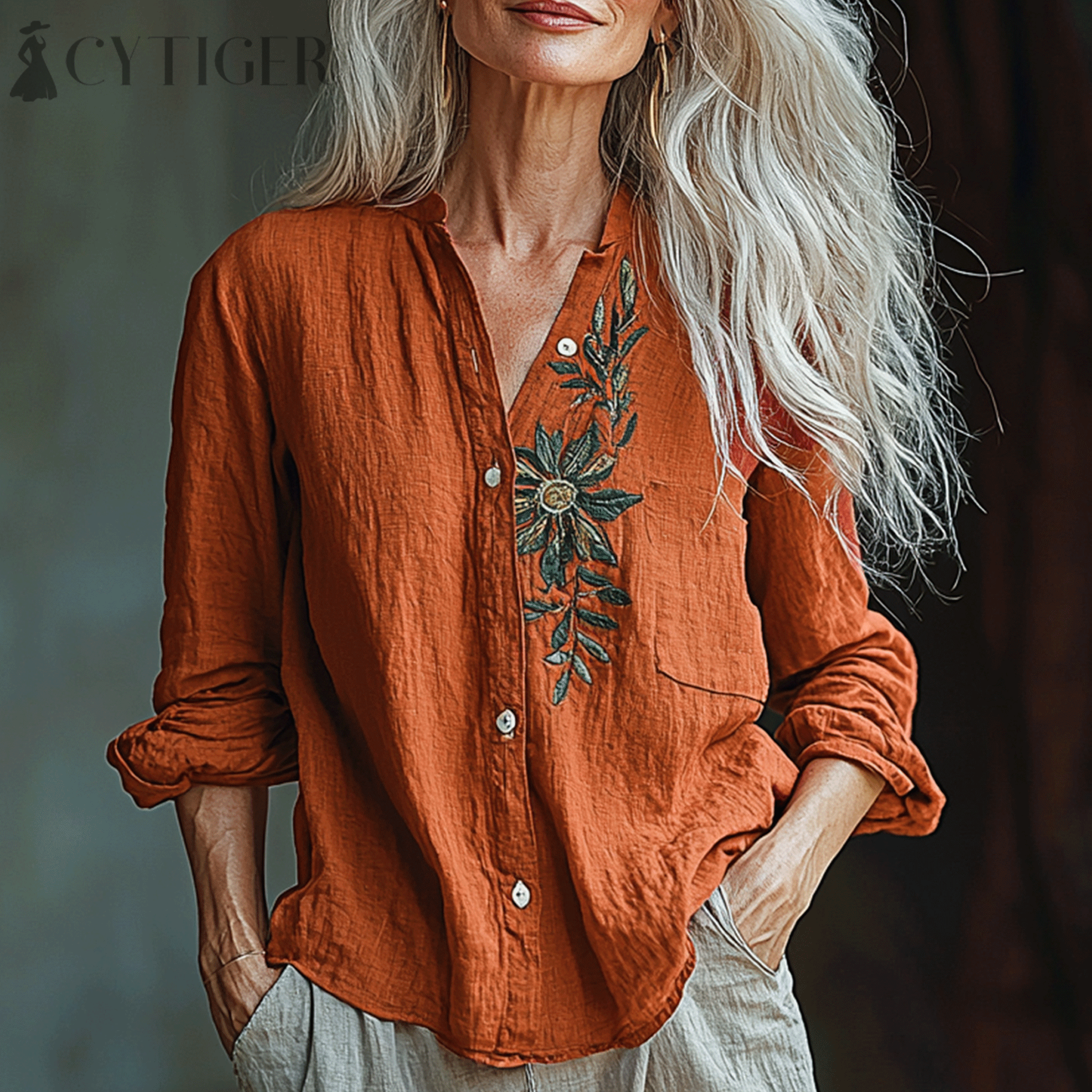 Women's Spring & Summer Floral Loose Linen Shirt